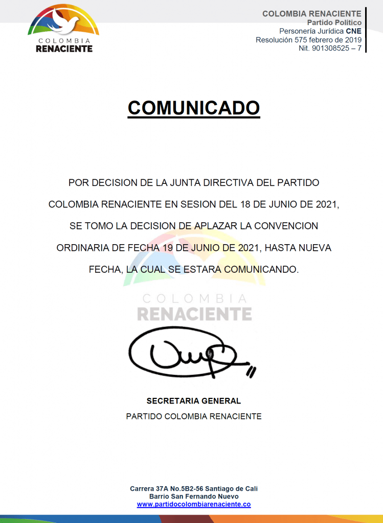Notificaciones judiciales: juridico@partidocolombiarenaciente.co